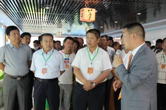 蒙羊牧業(yè)總裁閆樹(shù)春向來(lái)賓介紹蒙羊牧業(yè)工廠(chǎng)
