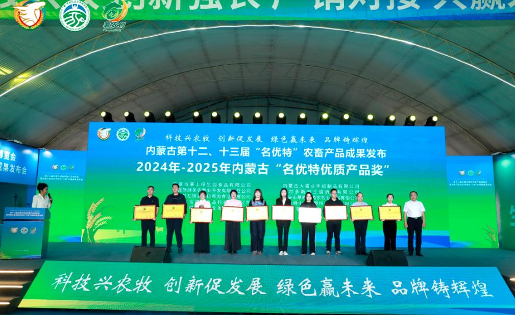 發(fā)布會(huì)上自治區(qū)農(nóng)牧廳二級(jí)巡視員侯雁冰、畜牧局局長(zhǎng)紅海、自治區(qū)人民政府駐上海辦事處黨組書(shū)記、主任李志剛、自治區(qū)農(nóng)牧廳鄉(xiāng)村產(chǎn)業(yè)發(fā)展和農(nóng)墾處處長(zhǎng)邢瑞、農(nóng)畜產(chǎn)品質(zhì)量安全中心副主任云巖春、協(xié)會(huì)會(huì)長(zhǎng)徐建忠、內(nèi)蒙古綠色與有機(jī)食品協(xié)會(huì)常務(wù)副會(huì)長(zhǎng)、高級(jí)顧問(wèn)邢黎明為獲得第十二、十三屆名優(yōu)特認(rèn)證的企業(yè)頒發(fā)獎(jiǎng)牌并合影留念。